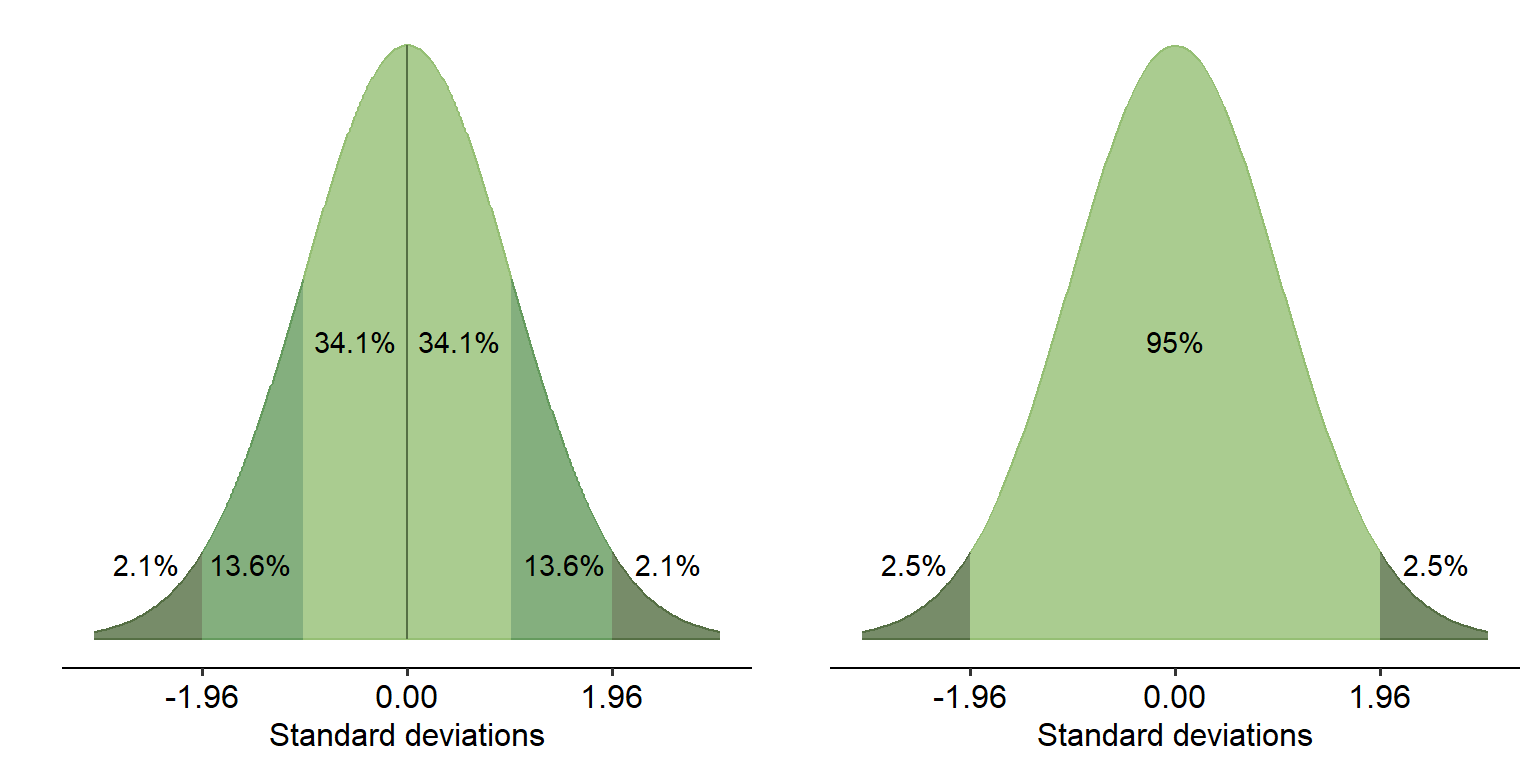 This sounds all well and good, but this provides us with some useful information. If all that business about values within 1.96 standard deviations is still fresh in your mind, this next statement should be a no-brainer: if 95% of our data on a normal distribution lies within 1.96 SD either side of the mean, that means that there is a certain range of values that 95% of our data falls in.