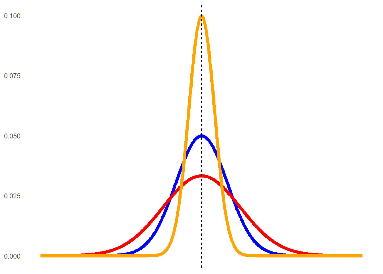 Therefore, in the example above the orange curve would be considered leptokurtic, while the red one would be platykurtic.