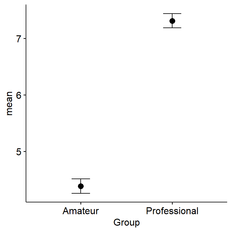 ## alternative hypothesis: true difference in means between group Amateur and group Professional is not equal to 0