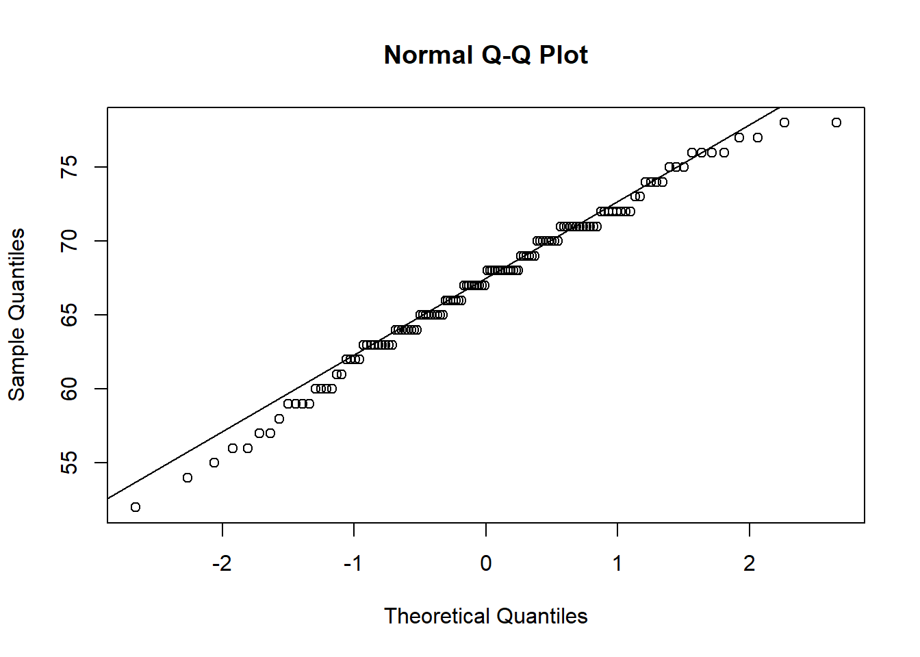 In this case, since we want to draw a Q-Q plot of a single variable, we just need to give the name of the column/variable we are interested in using data$variable format.