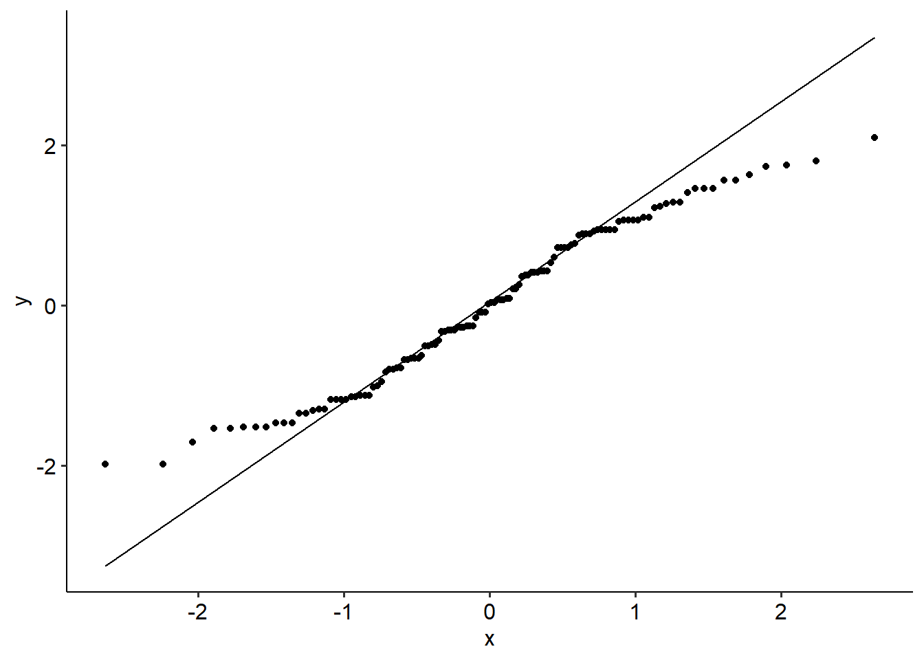 R-Note: For a repeated measures ANOVA, for some reason the closest I can get to generating what Jamovi does is to build an aov() model without an explicit Error() term - as would be the case for a fully between-subjects ANOVA. You can then use the standardised residuals to create a Q-Q plot using the below code. Note that broom:augment() is just a helper function that nicely extracts the residuals: